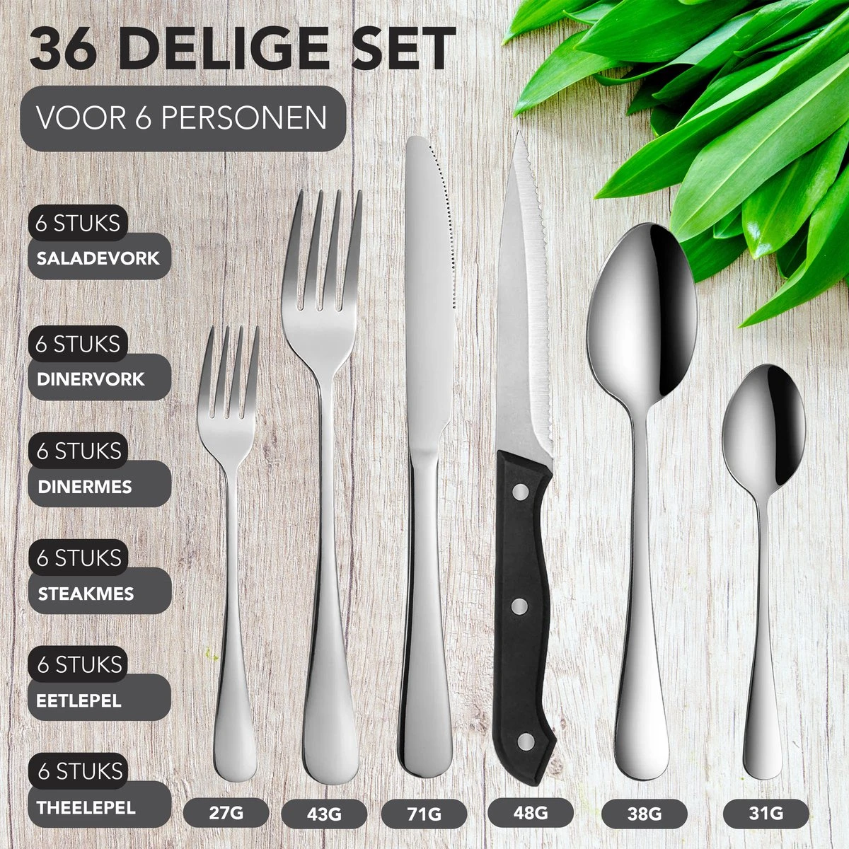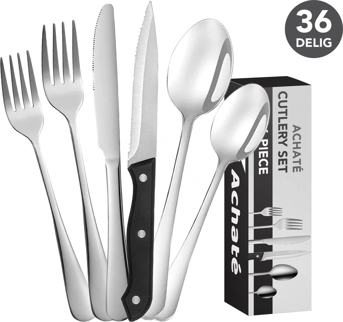 Wil jij graag een bestek set die niet snel dof wordt of snel slijt? Ervaar bestek van hoogwaardig, restaurant kwaliteit roestvaststaal, gewoon in je huiskamer! Geniet van maximaal comfort met de 36-delige bestek set van Achaté.