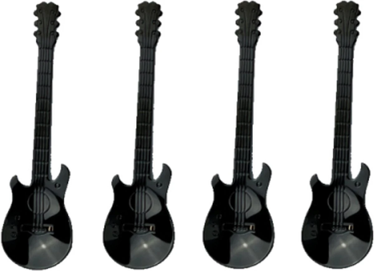 | Verpakkingsinhoud | 4 Zwarte theelepels in de vorm van een gitaar |