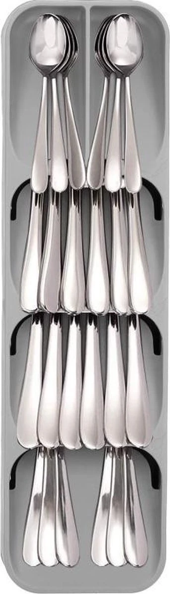 De organizer heeft 5 vakken. Hierdoor passen er lepels, messen en vorken in.